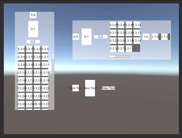 In many scenarios, you might need a scrollable view to display a bunch of elements that cannot be displayed on one screen at the same time. In some cases you may also want to arrange the layout of scroll view vertically or horizontally while some elements in the scroll view contain their own layouts as well, such as developing a scroll view to display player inventory in which items should be categorized by their types.